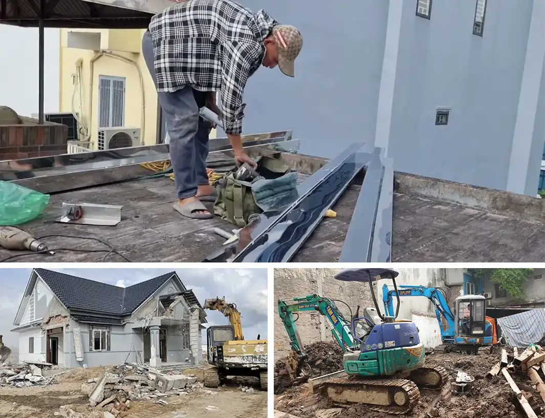 Công ty TNHH HDV Việt Nam chuyên cung cấp trọn gói các dịch vụ thi công cải tạo nhà cũ, đào móng, phá dỡ nhà cửa, chống thấm, sửa chữa máng xối và nhiều hạng mục xây dựng dân dụng khác. Với đội ngũ kỹ thuật lành nghề, máy móc hiện đại và quy trình làm việc an toàn – nhanh chóng – tiết kiệm, chúng tôi cam kết mang đến giải pháp tối ưu giúp nâng tầm không gian sống, đảm bảo bền vững và thẩm mỹ lâu dài cho mọi công trình.